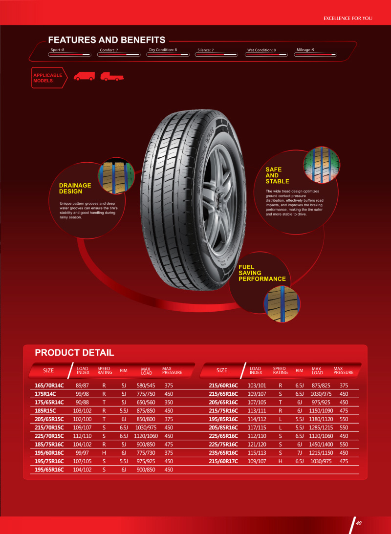 SUMTIRA VAN 輕型商用車(chē)用輪胎,獨(dú)特的花紋溝,深排水槽,有較好的排水性和經(jīng)濟(jì)燃油性。