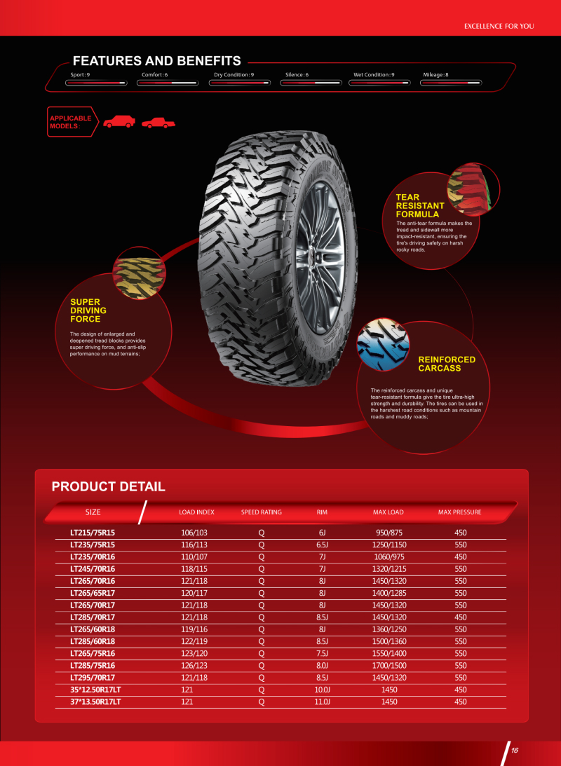 WILDTRAC MTX9 火焰型大塊花紋,是一款用于極限越野的輪胎,惡劣路況下提供超強的驅(qū)動力、泥地防滑性能。