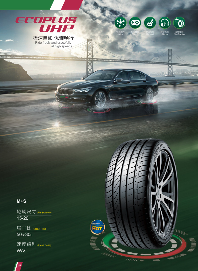 ECOPLUS UHP 出眾的操控性能,運(yùn)動(dòng)型輪胎中不可多得的兼具舒適性,駕乘更流暢、更舒適。