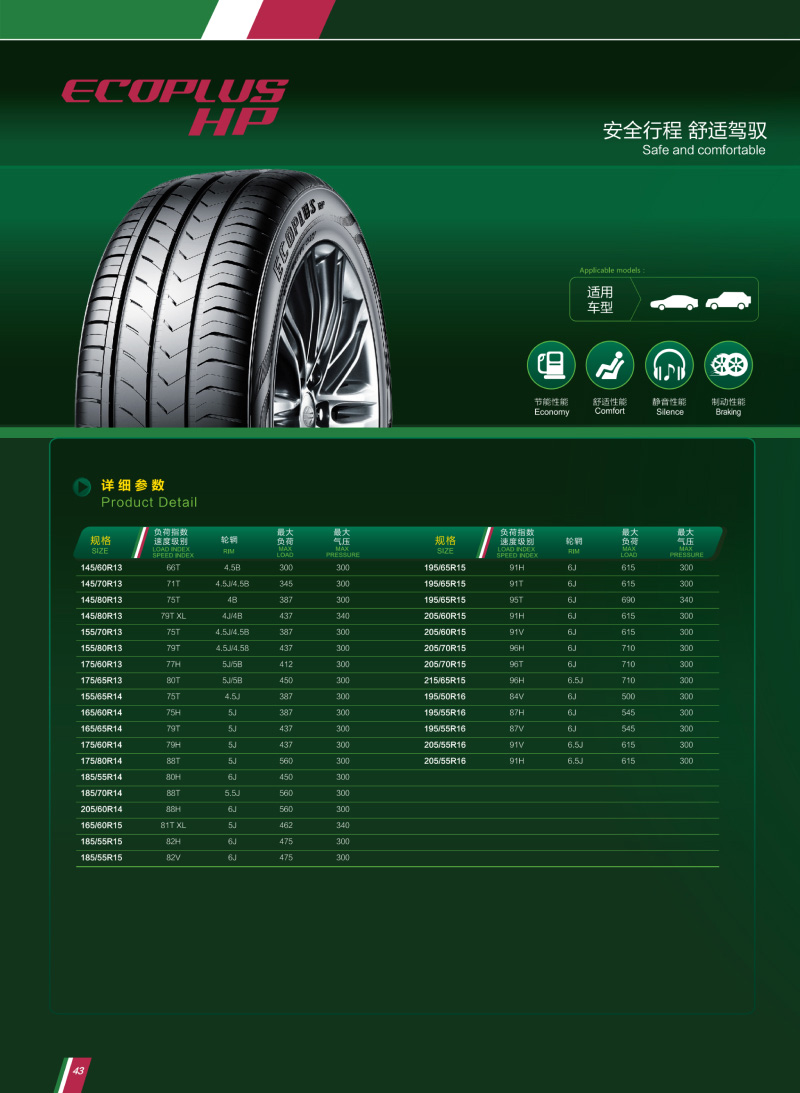ECOPLUS HP 靜音舒適,降低行駛中的噪音產(chǎn)生。節(jié)油環(huán)保,降低滾動(dòng)阻力。